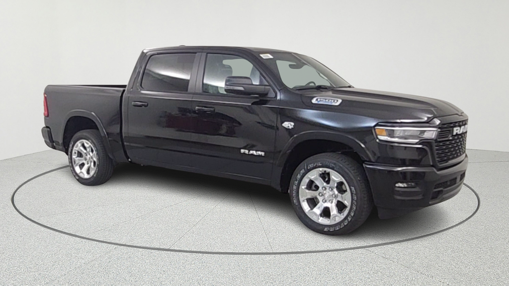 Diamond Black Crystal Pearlcoat 2026 RAM 1500 4D Crew Cab Big Horn/Lone Star HEMI 5.7L V8 Multi Displacement VVT eTorque 16/20 City/Highway MPG 8-Speed Automatic 4WD
