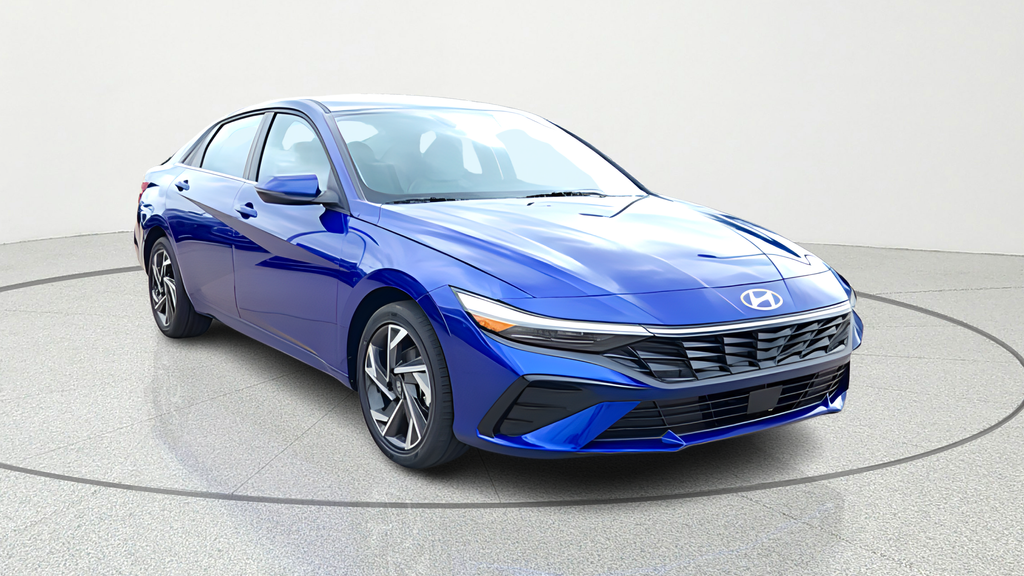 Option Group 01, Elantra Hybrid Limited, 4D Sedan, I4, 6-Speed Dual Clutch, FWD, Intense Blue, Light Gray Premium Synthetic, 4-Wheel Disc Brakes, 8 Speakers, ABS brakes, Air Conditioning, Alloy wheels, AM/FM radio: SiriusXM, Apple CarPlay & Android Auto, Auto High-beam Headlights, Auto-dimming Rear-View mirror, Automatic temperature control, Brake assist, Bumpers: body-color, Cargo Net, Cargo Side Bins, Cargo Tray, Carpeted Floor Mats, Center Console Tray, Delay-off headlights, Driver door bin, Driver vanity mirror, Dual front impact airbags, Dual front side impact airbags, Electronic Stability Control, Emergency communication system: None, Exterior Parking Camera Rear, First Aid Kit, Front anti-roll bar, Front Bucket Seats, Front Center Armrest, Front dual zone A/C, Front reading lights, Front wheel independent suspension, Fully automatic headlights, H-Tex Leatherette Seat Trim, Heated and Ventilated Front Bucket Seats, Heated door mirrors, Heated front seats, Illuminated entry, Low tire pressure warning, Memory seat, Navigation System, Occupant sensing airbag, Outside temperature display, Overhead airbag, Overhead console, Panic alarm, Passenger door bin, Passenger vanity mirror, Power door mirrors, Power driver seat, Power moonroof, Power steering, Power windows, Radio: AM/FM/HD/SiriusXM Display Audio, Rear Bumper Applique, Rear seat center armrest, Rear side impact airbag, Rear window defroster, Remote keyless entry, Security system, Speed control, Speed-sensing steering, Split folding rear seat, Steering wheel mounted audio controls, Tachometer, Telescoping steering wheel, Tilt steering wheel, Traction control, Trip computer, Turn signal indicator mirrors, Variably intermittent wipers, Ventilated front seats, and Wheels: 17 x 7.0J Machine Finish Alloy.