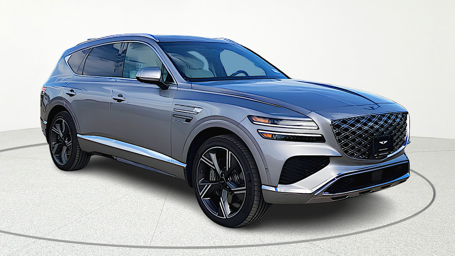 Option Group 01, Navigation System, 18 Speakers, 3rd Row seats: split-bench, 4-Wheel Disc Brakes, ABS brakes, Adaptive suspension, Air Conditioning, Alloy wheels, AM/FM radio: SiriusXM, Anti-whiplash front head restraints, Auto High-beam Headlights, Auto tilt-away steering wheel, Auto-dimming door mirrors, Auto-dimming Rear-View mirror, Automatic temperature control, Brake assist, Bumpers: body-color, Compass, Delay-off headlights, Driver door bin, Driver vanity mirror, Dual front impact airbags, Dual front side impact airbags, Electronic Stability Control, Emergency communication system: Genesis Connected Services, Exterior Parking Camera Rear, Four wheel independent suspension, Front anti-roll bar, Front Bucket Seats, Front Center Armrest, Front dual zone A/C, Front reading lights, Fully automatic headlights, Garage door transmitter: HomeLink, Genuine wood console insert, Genuine wood dashboard insert, Genuine wood door panel insert, Heads-Up Display, Heated door mirrors, Heated front seats, Heated rear seats, Heated steering wheel, Illuminated entry, Knee airbag, Leather steering wheel, Low tire pressure warning, Memory seat, Nappa Leather Seating Surfaces, Occupant sensing airbag, Outside temperature display, Overhead airbag, Overhead console, Panic alarm, Passenger door bin, Passenger vanity mirror, Power door mirrors, Power driver seat, Power Liftgate, Power moonroof, Power passenger seat, Power steering, Power windows, Radio data system, Rain sensing wipers, Rear air conditioning, Rear anti-roll bar, Rear reading lights, Rear seat center armrest, Rear side impact airbag, Rear window defroster, Rear window wiper, Reclining 3rd Row seat, Remote keyless entry, Security system, Speed control, Speed-sensing steering, Speed-Sensitive Wipers, Split folding rear seat, Spoiler, Steering wheel memory, Steering wheel mounted audio controls, Tachometer, Telescoping steering wheel, Tilt steering wheel, Traction control, Trip computer, Turn signal indicator mirrors, Variably intermittent wipers, Ventilated front seats, Ventilated rear seats, and Wheels: 22″ x 9.5J Dark Gray Matte Alloy.